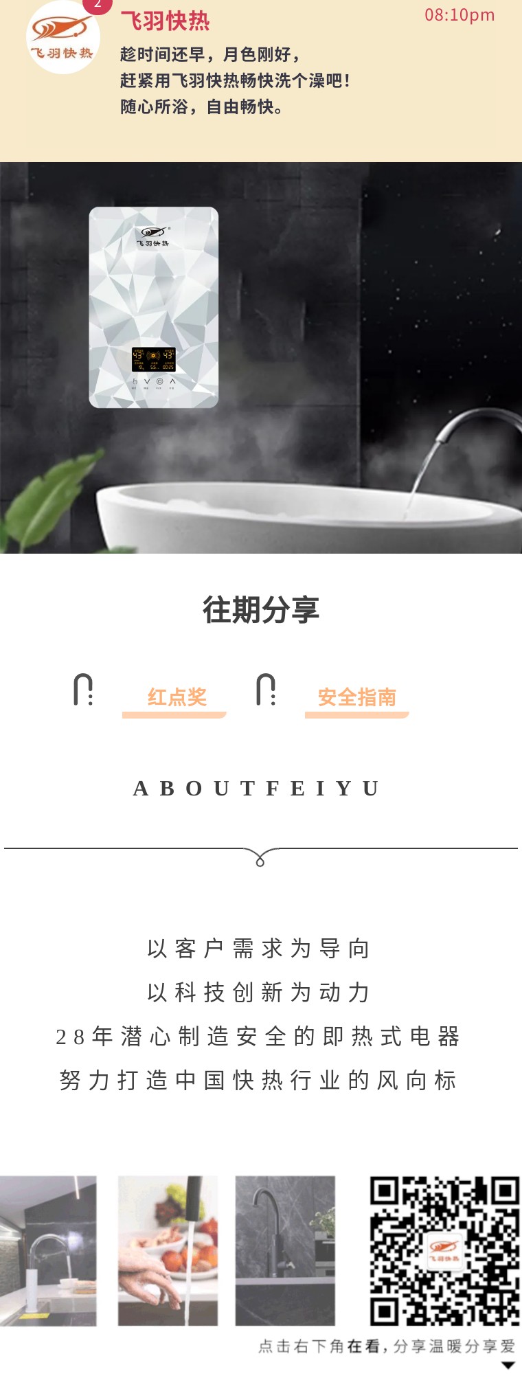 趁時間還早,月色剛好,趕緊用飛羽快熱暢快洗個澡吧!隨心所浴,自由暢快。