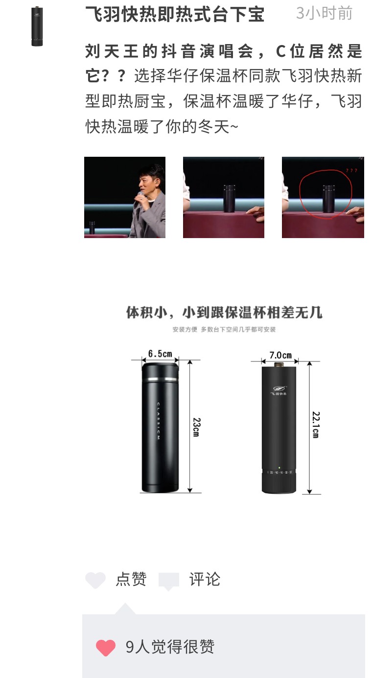 劉天王的抖音演唱會,C位居然是它??選擇華仔保溫杯同款飛羽快熱新型即熱廚寶,保溫杯溫暖了華仔,飛羽快熱溫暖了你的冬天~