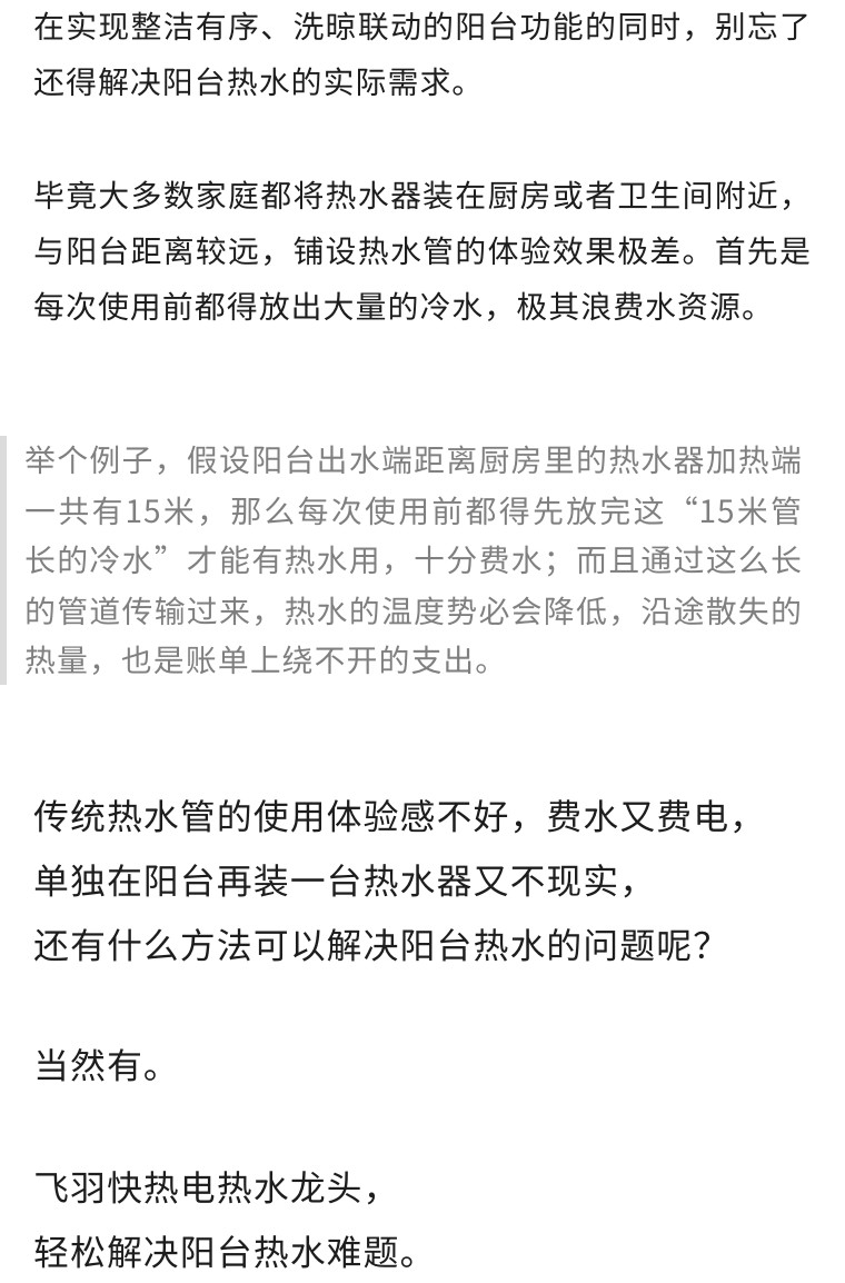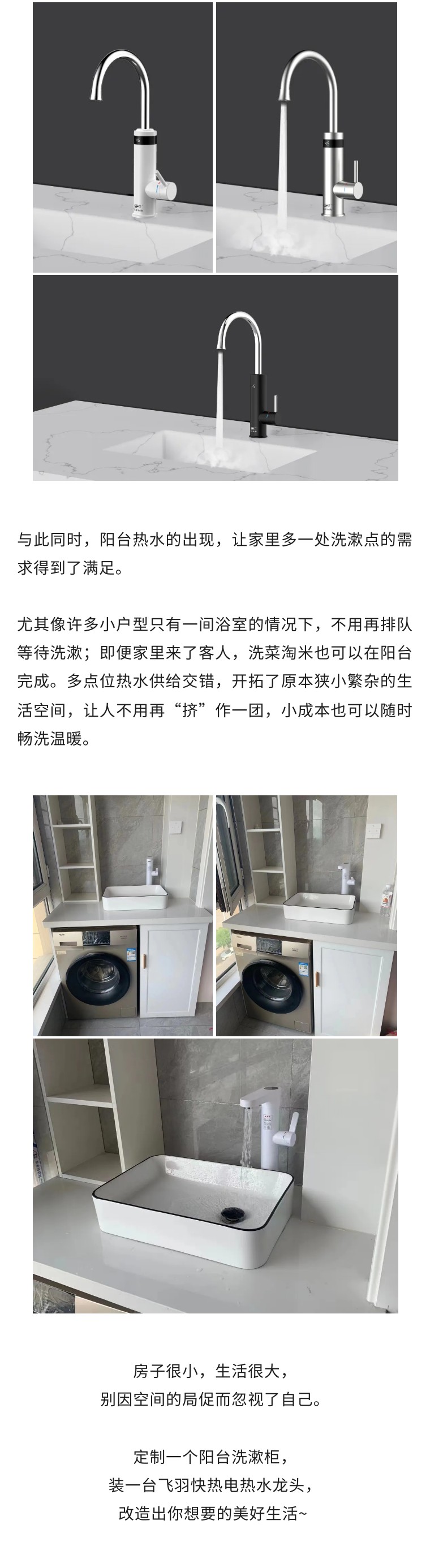 龍頭一開,熱水即來 陽臺,作為室內(nèi)建筑的延伸,用好了可以是居心地,用不好就是雞肋區(qū)。隨著居住者對生活品質(zhì)的追求,陽臺不再只是單一的晾曬區(qū)或“雜物間”,開始兼?zhèn)涓鄬?shí)用功能。