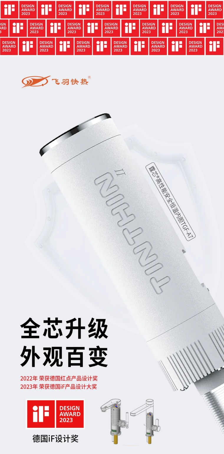 飛羽快熱霆芯?高性能安全恒溫內(nèi)膽TGF-A7榮獲2023德國iF設(shè)計(jì)大獎(jiǎng)(iF DESIGN AWARD 2023)。這也是繼德國紅點(diǎn)獎(jiǎng)之后,我們獲得的又一國際大獎(jiǎng)!