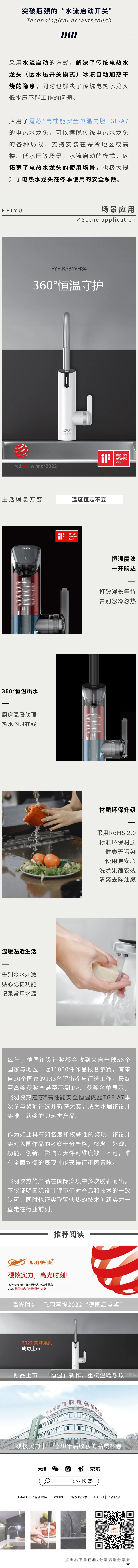 早在2022年,飛羽快熱恒溫電熱水龍頭·茉莉便已斬獲德國紅點(diǎn)產(chǎn)品設(shè)計(jì)大獎(jiǎng)(REDDOT WINNER 2022),成為第一臺榮獲國際獎(jiǎng)項(xiàng)的電熱水龍頭;次年,霆芯?高性能安全恒溫內(nèi)膽TGF-A7榮獲德國iF設(shè)計(jì)大獎(jiǎng)(iF DESIGN AWARD 2023),此次更是國際對于飛羽科研實(shí)力的雙重肯定,證明飛羽快熱是電熱水龍頭當(dāng)之無愧的“行業(yè)引領(lǐng)者”。