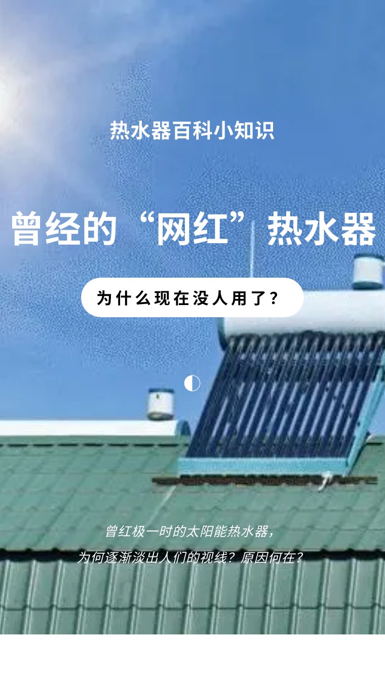 以前在農(nóng)村或者鄉(xiāng)鎮(zhèn)上,遠(yuǎn)遠(yuǎn)地就能看到房屋的屋頂上放著一個(gè)龐然大物。那便是能夠?qū)⑻?yáng)光能轉(zhuǎn)化為熱能的加熱裝置——太陽(yáng)能熱水器。
