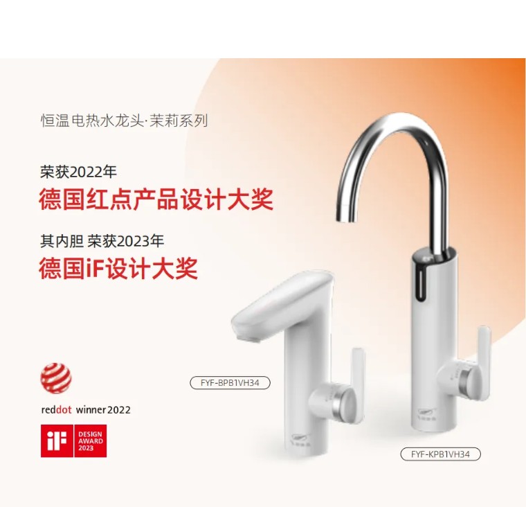 其中,恒溫式電熱水龍頭·茉莉和其內(nèi)部搭載的霆芯?高性能安全恒溫內(nèi)膽TGF-A7分別獲得了2022年度德國紅點(diǎn)獎和2023年度德國iF獎等國際權(quán)威設(shè)計(jì)大獎。