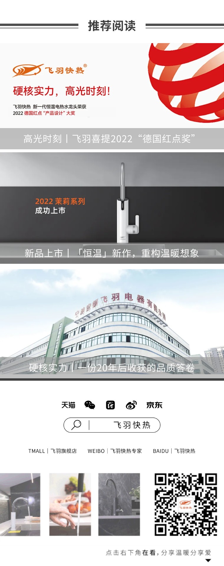 加入飛羽,共贏未來!近兩年來,飛羽快熱以奮斗之姿,從品牌、生產(chǎn)、服務(wù)、營銷等多維度進(jìn)行全觸點(diǎn)創(chuàng)新升級,持續(xù)提升品牌綜合實(shí)力。